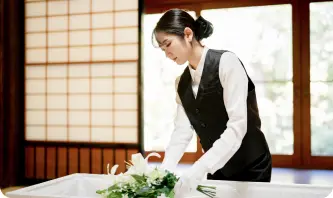 詳しく見るなじみやすい広さの空間に、穏やかな空気が流れる式場です。親密さを感じられるほどよい70席の椅子席で、2式場ご用意しております。在りし日の故人を思い浮かべつつ、しめやかに旅立ちをお見送り頂けます。