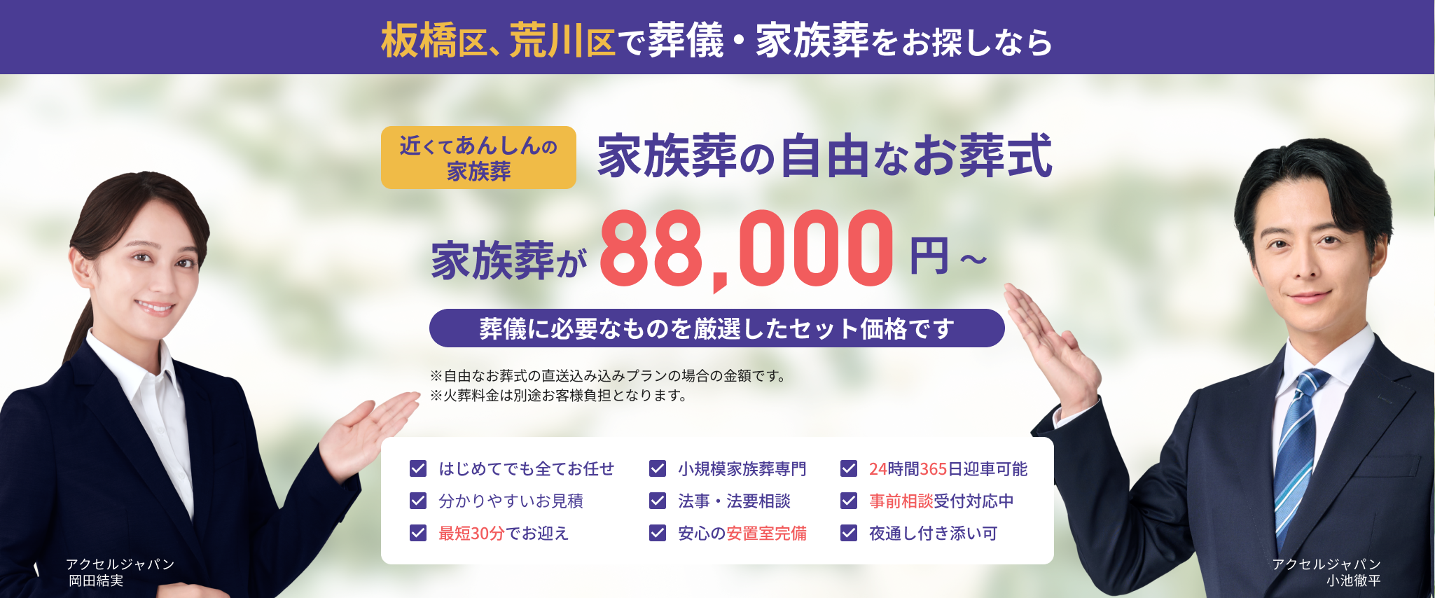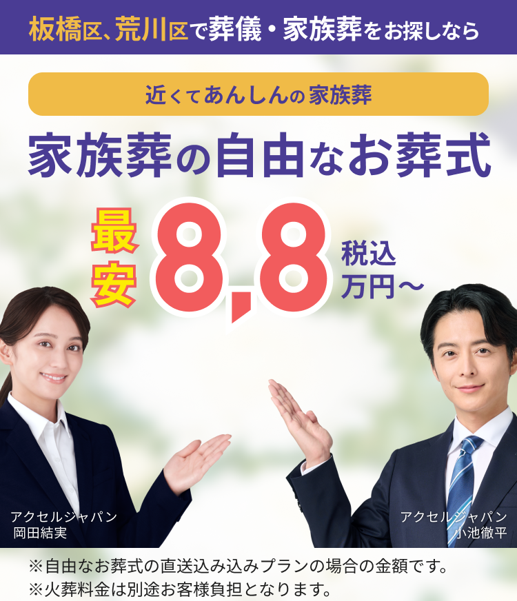 東京都 板橋区・荒川区に2式場を展開している1日1件貸切の家族葬専門式場は